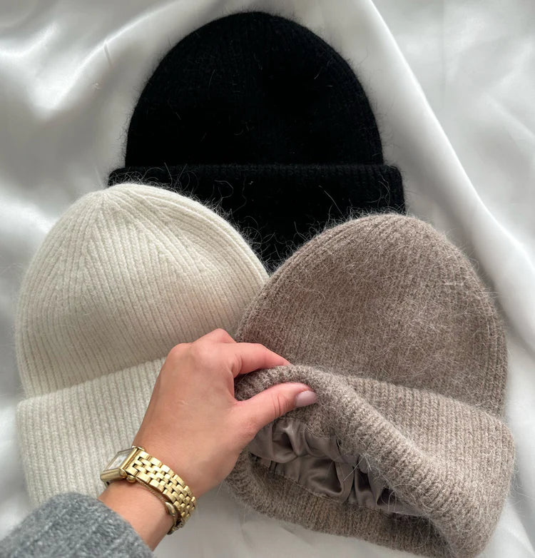 Våra mössor med satin på insidan är inte bara supermysiga – de skyddar också ditt hår från friss, tovor och slitage. Perfekt för dig som vill hålla håret glansigt och snyggt, även när det är kallt ute. Stay cute, stay comfy